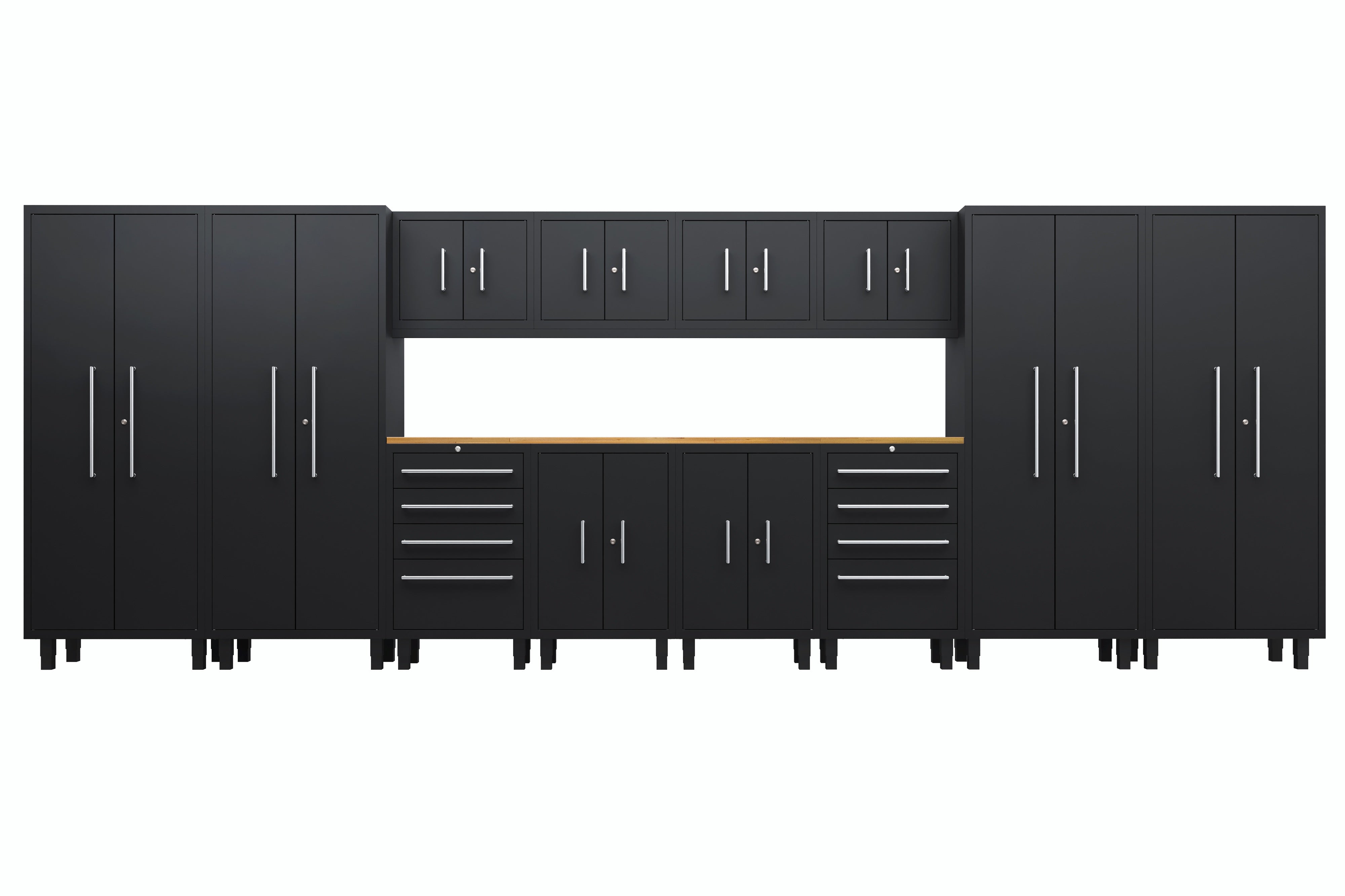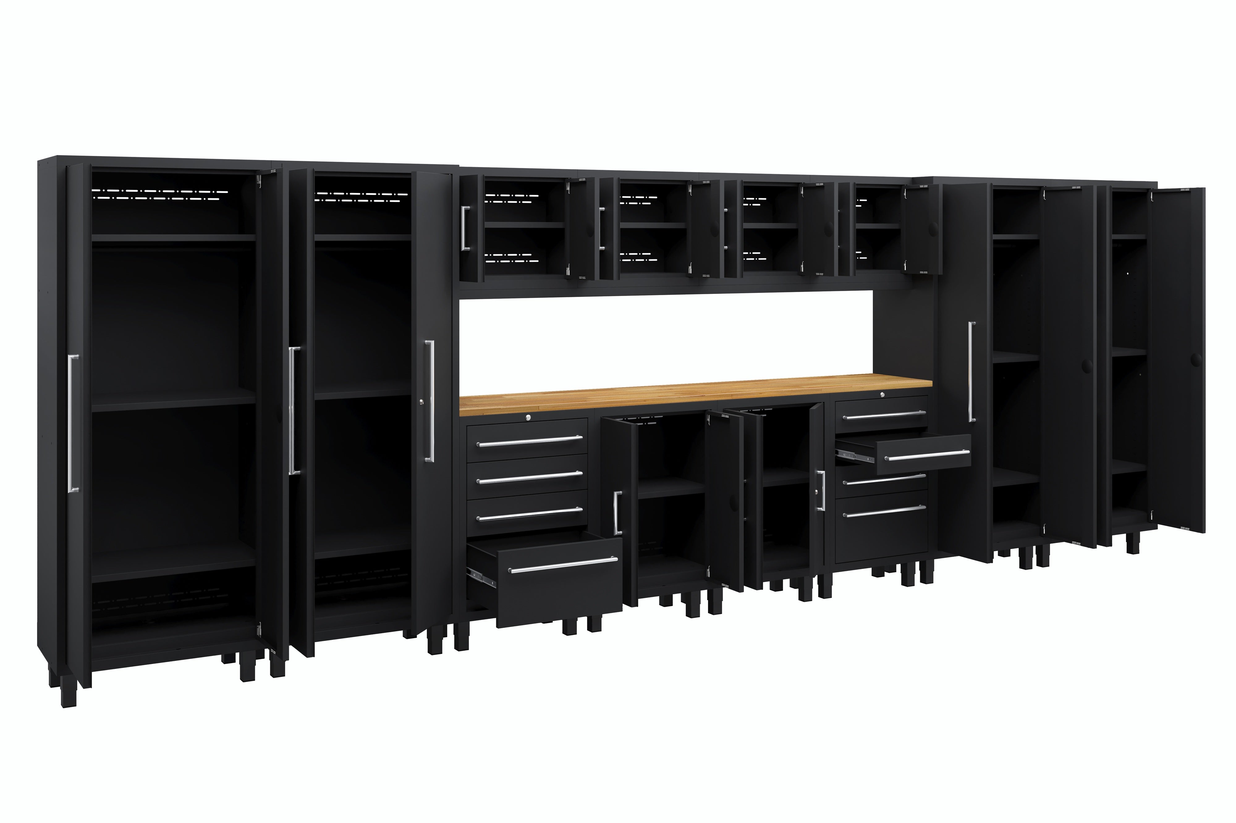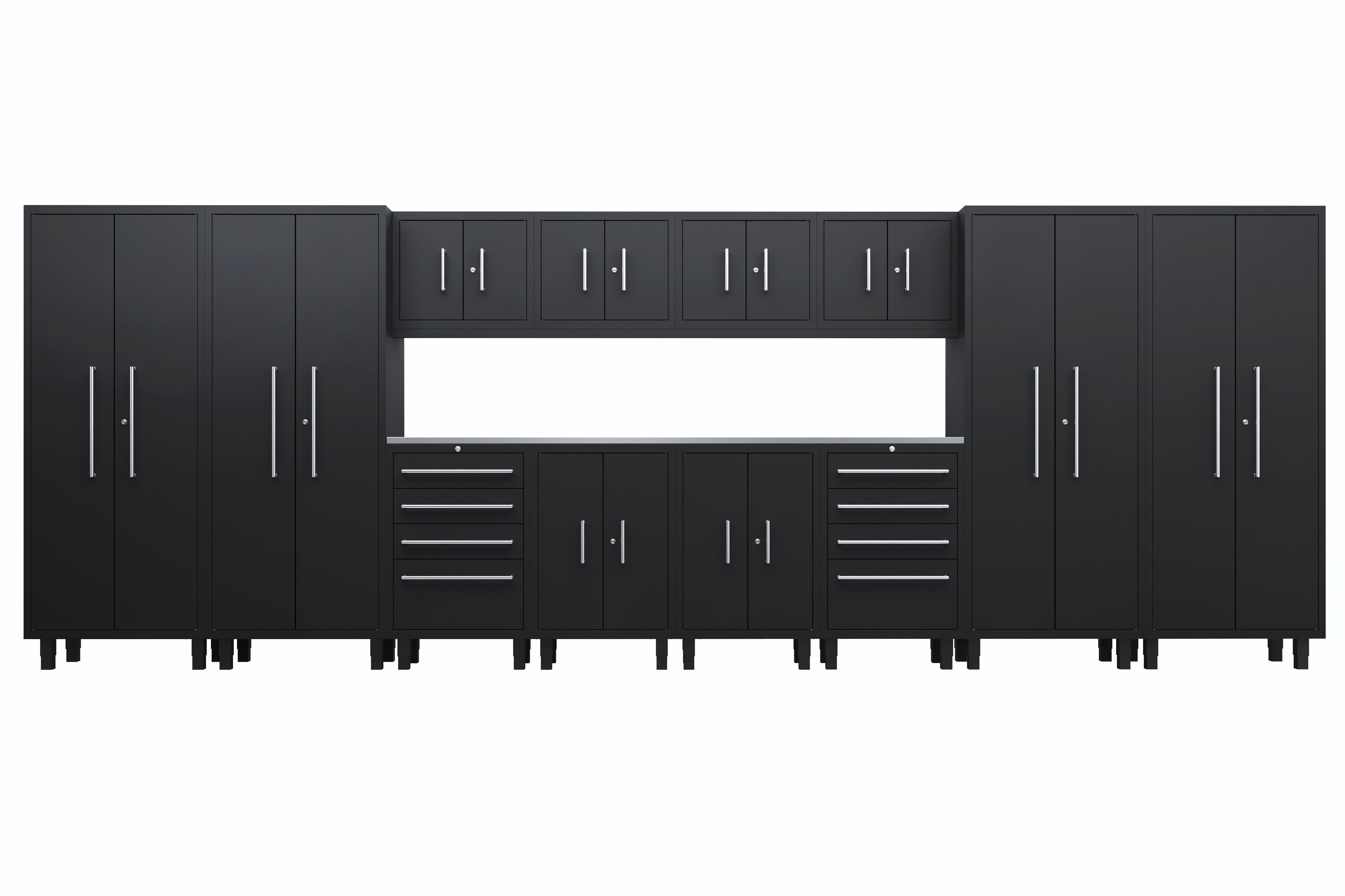 Lorsque le meilleur est de mise, cet ensemble de garage professionnel de 14 pièces offre une organisation et une efficacité de travail inégalées. Avec quatre casiers, quatre armoires murales, deux meubles bas, deux armoires à outils et deux plans de travail de 122 cm, c'est la solution idéale pour moderniser votre garage.