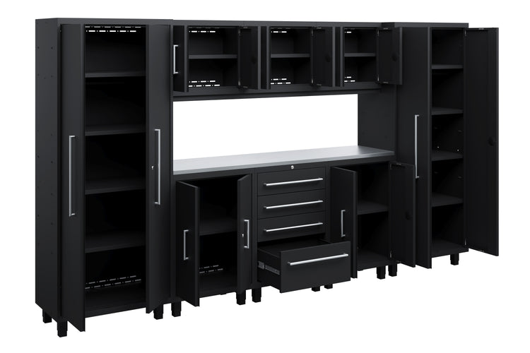 Ensemble d'armoires Core Plus Series 9 pièces avec base, tiroirs à outils, armoires murales et casiers de 76 cm