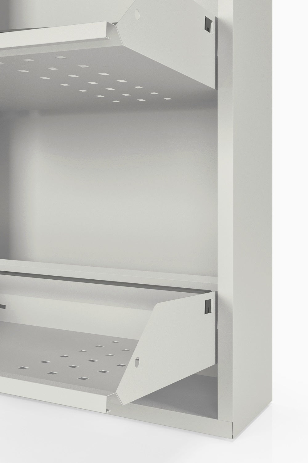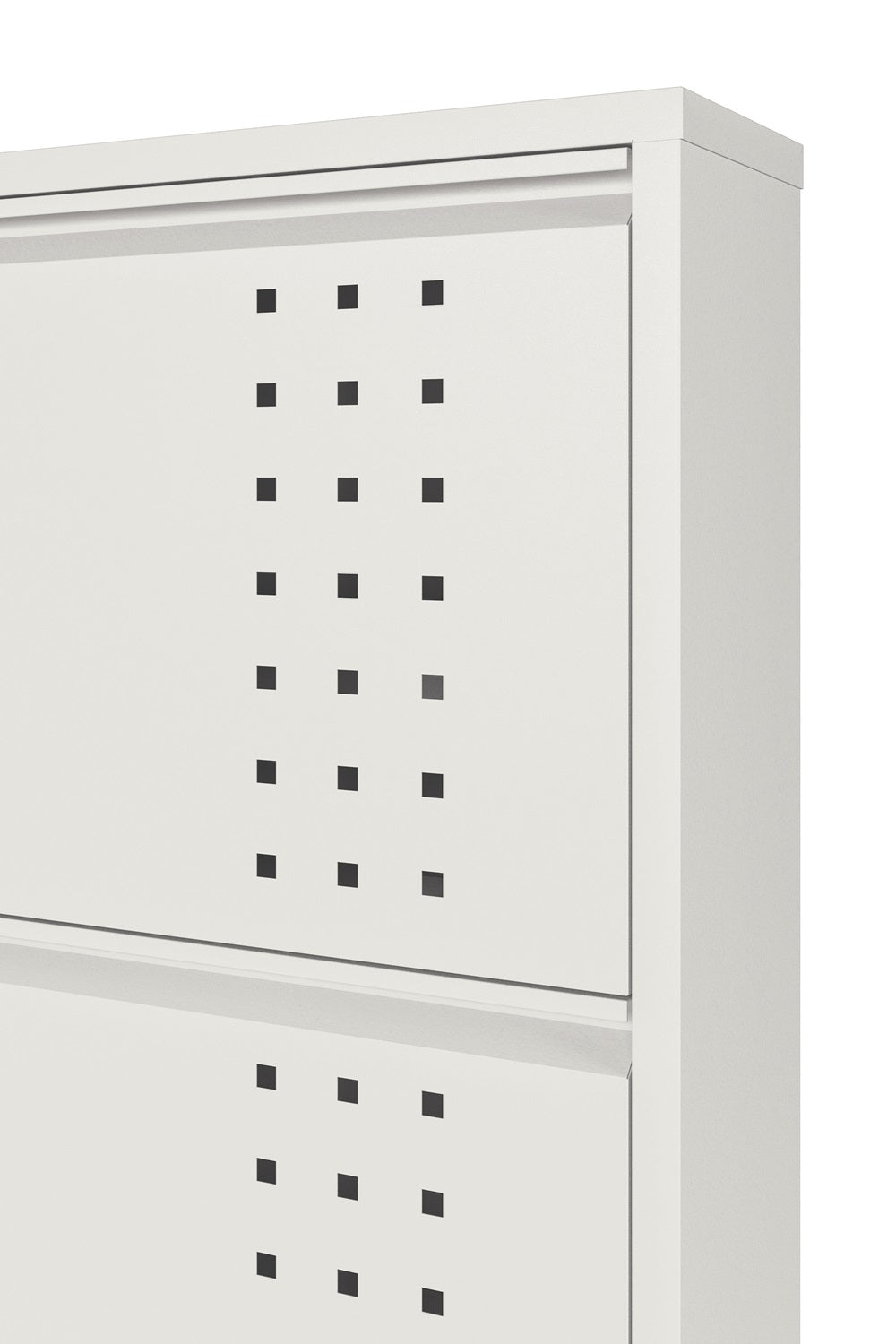 Built for durability, this shoe storage cabinet features a fully welded steel construction with an epoxy-polyester powder coating, ensuring long-lasting strength. Its sleek, space-saving design includes integrated handles and magnetic latches for effortless access, each tier provides ample room for up to two pairs of shoes per drawer. For optimal ventilation, the square hole model promotes airflow, preventing moisture buildup—ideal for humid spaces like garages or bathrooms. Designed for versatility, this cabinet fits seamlessly in closets, bedrooms, entryways, and more, with rear mounting holes for wall installation. Easy to use and maintain, its smooth metal surface wipes clean with ease.