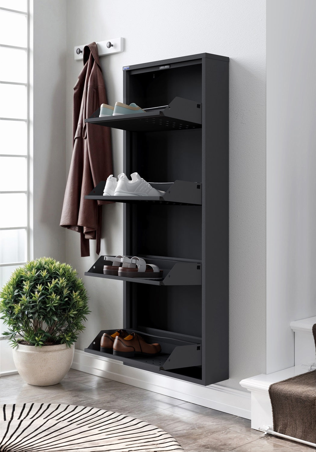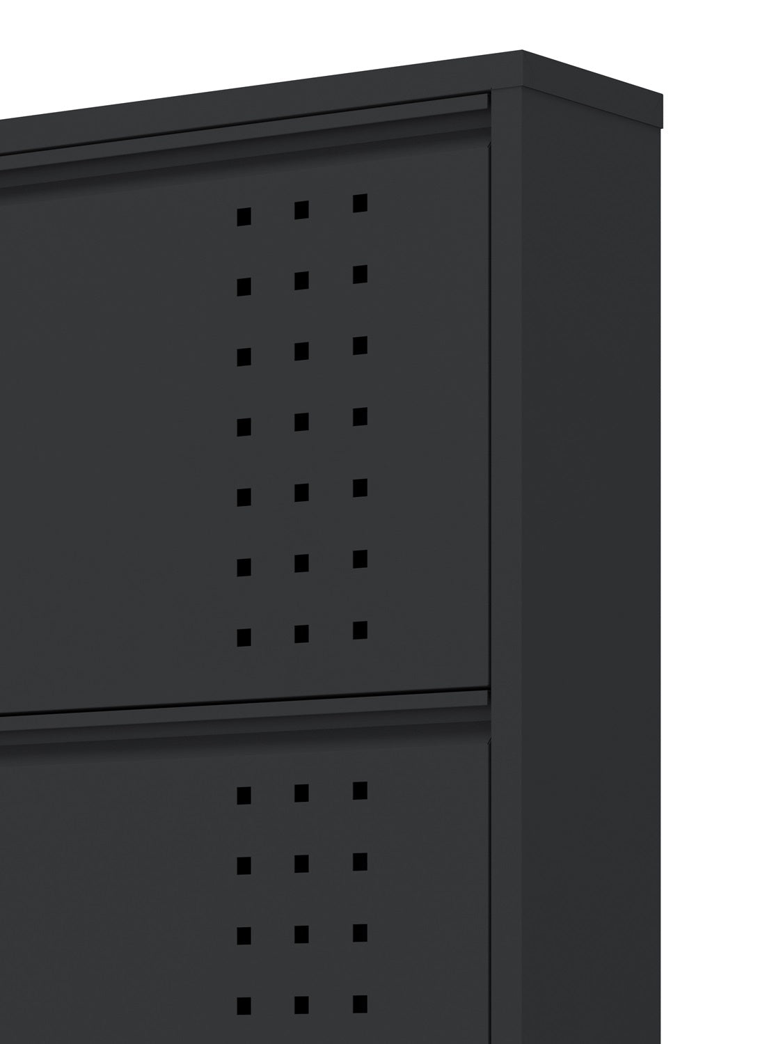 Built for durability, this shoe storage cabinet features a fully welded steel construction with an epoxy-polyester powder coating, ensuring long-lasting strength. Its sleek, space-saving design includes integrated handles and magnetic latches for effortless access, each tier provides ample room for up to two pairs of shoes per drawer. For optimal ventilation, the square hole model promotes airflow, preventing moisture buildup—ideal for humid spaces like garages or bathrooms. Designed for versatility, this cabinet fits seamlessly in closets, bedrooms, entryways, and more, with rear mounting holes for wall installation. Easy to use and maintain, its smooth metal surface wipes clean with ease.