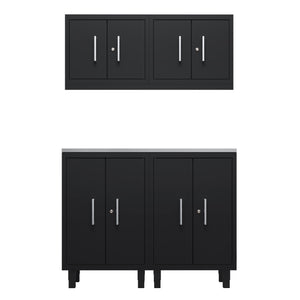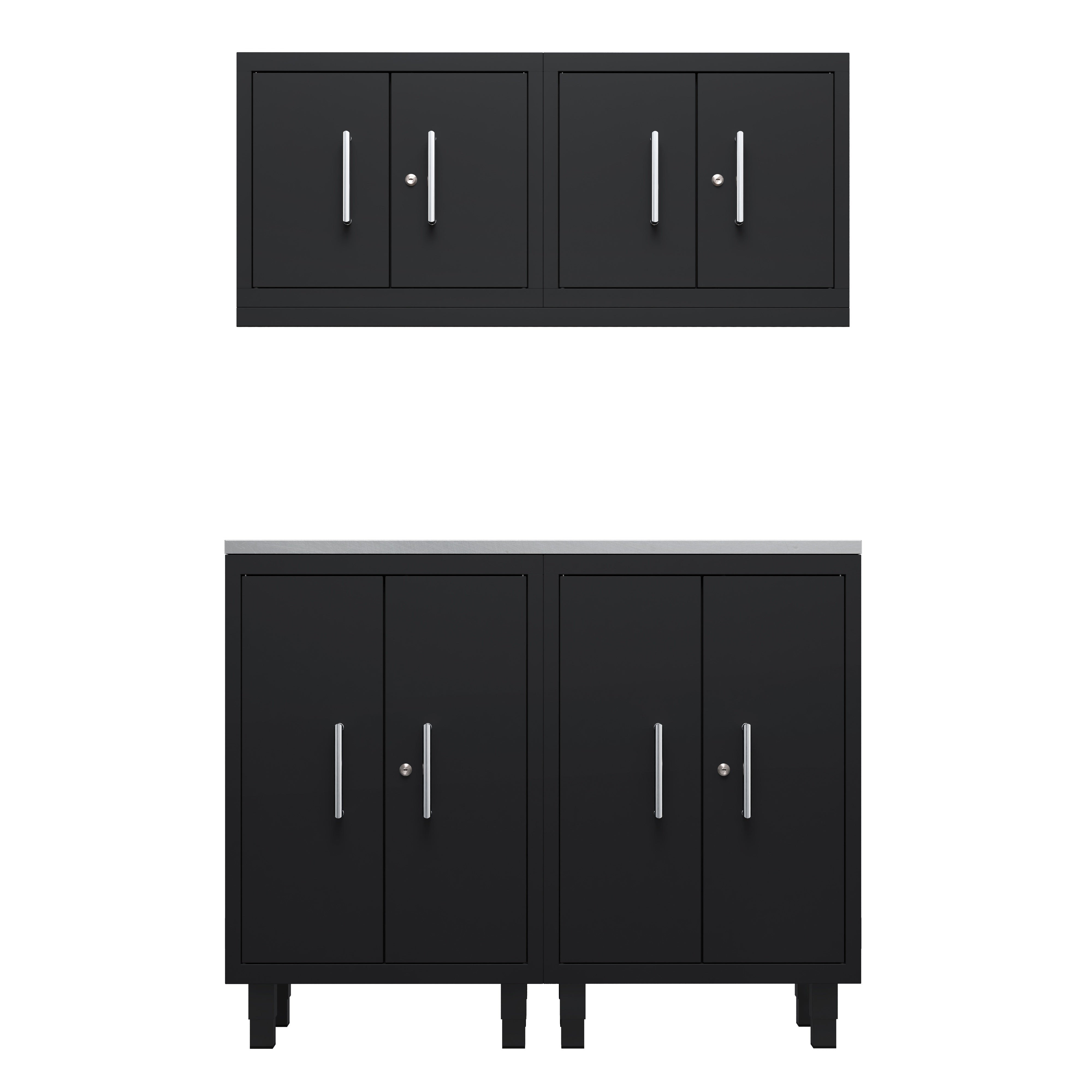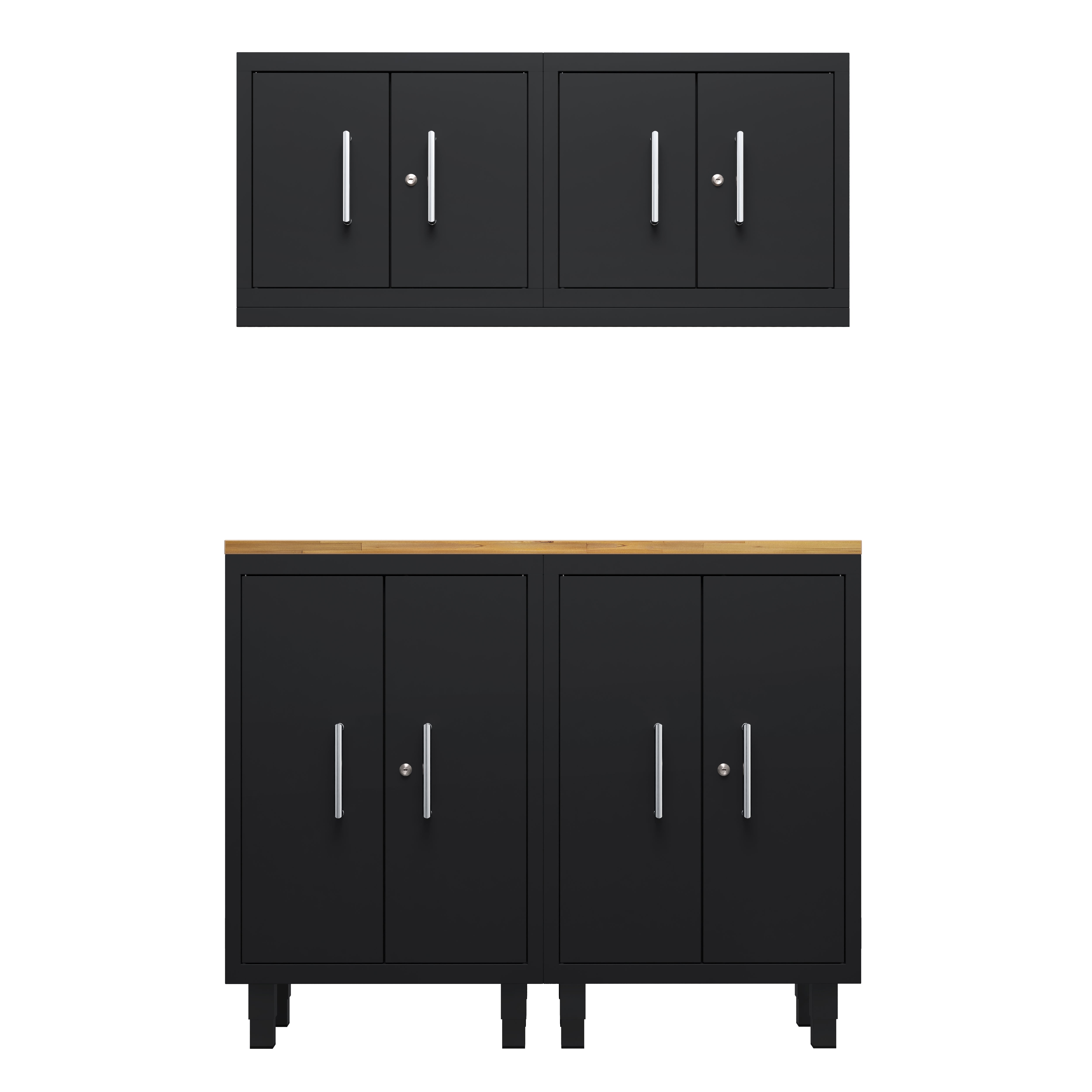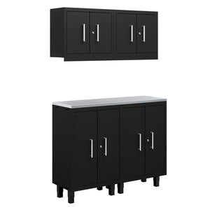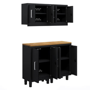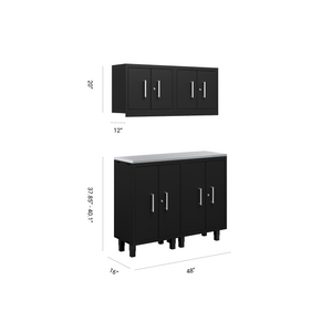 This 5-piece workstation kit is the perfect blend of storage and workspace functionality. Featuring two base cabinets, two wall cabinets, and a 48” countertop, this setup creates a dedicated area for projects, repairs, and organization.