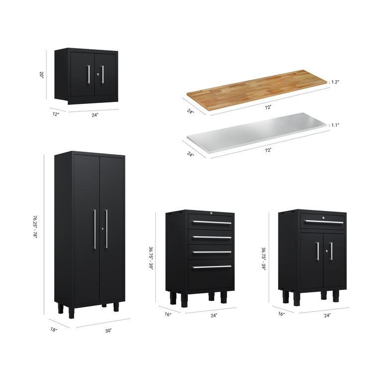 Improve your garage efficiency with this ten piece steel cabinet system.