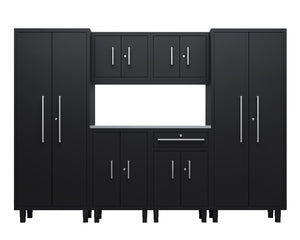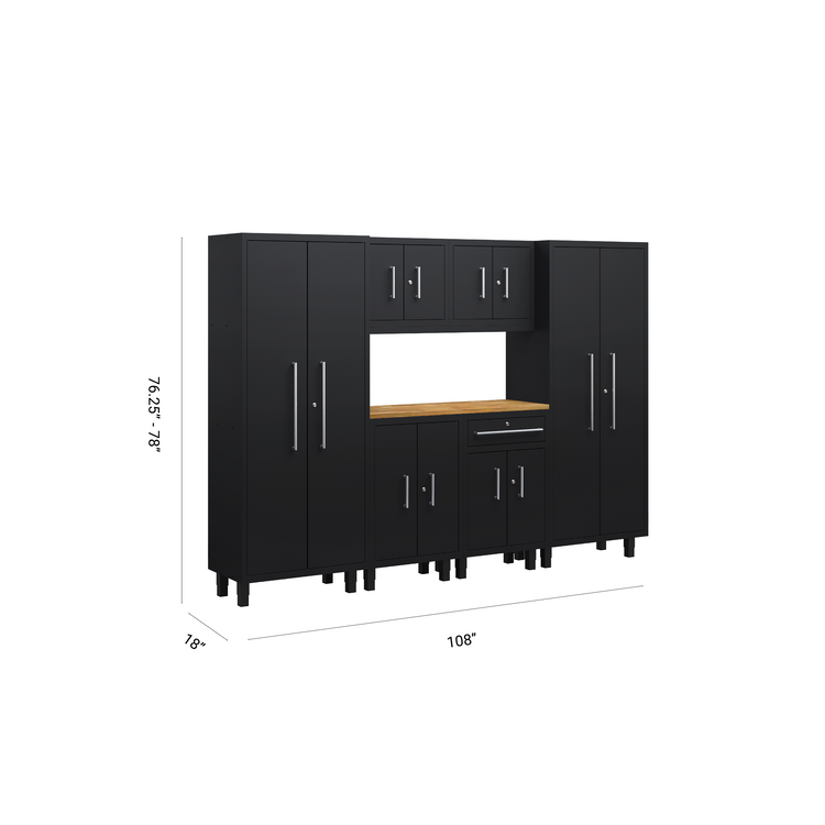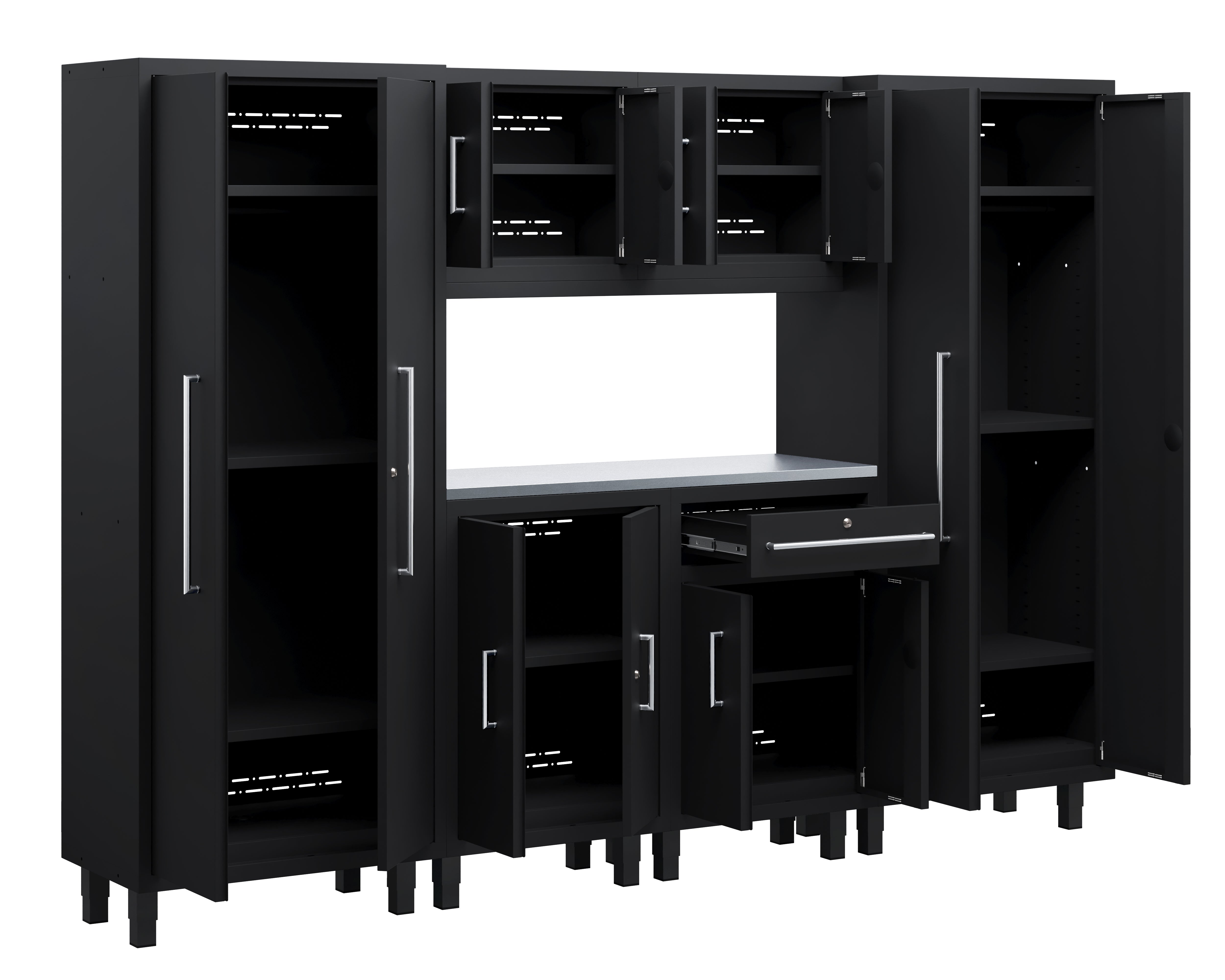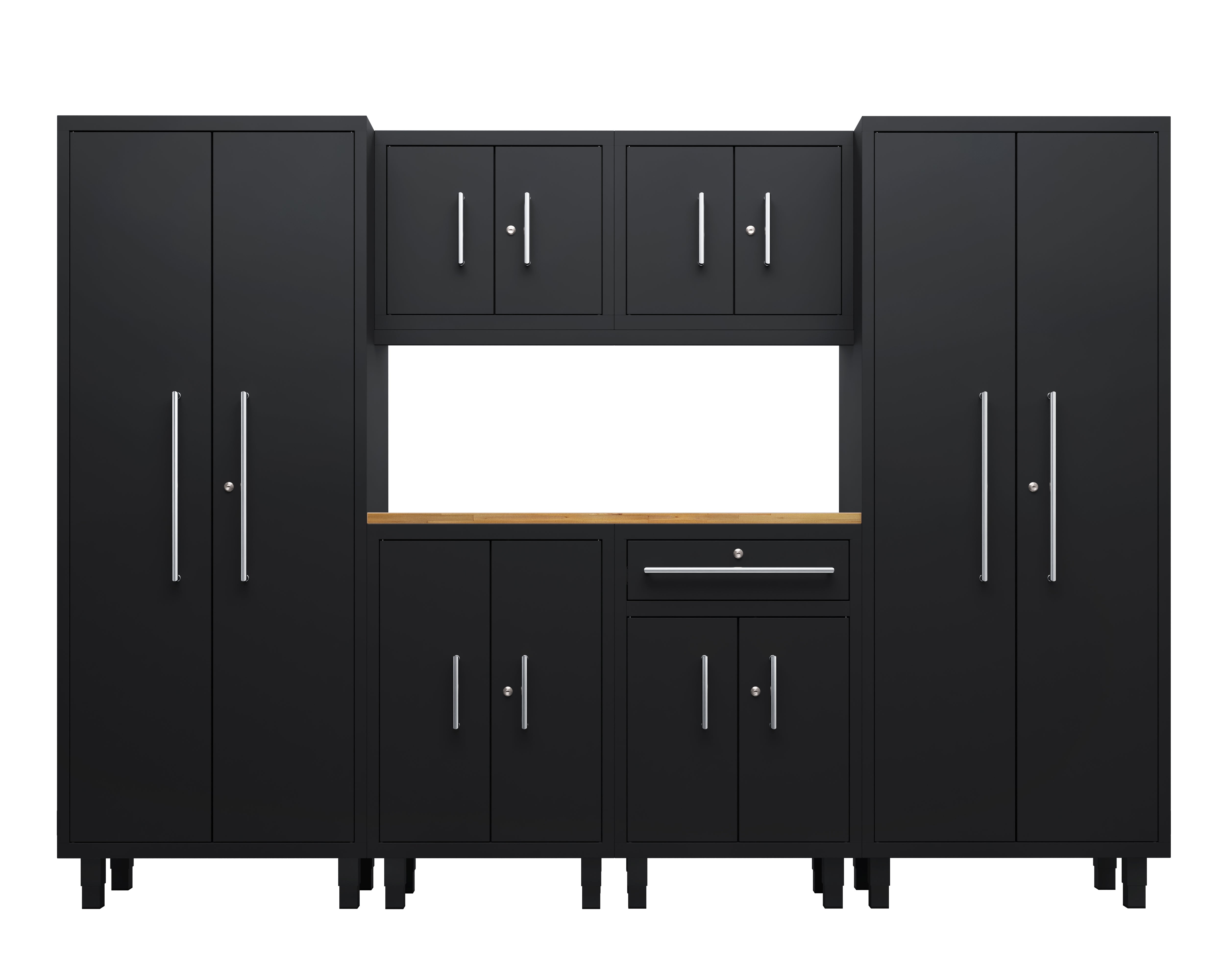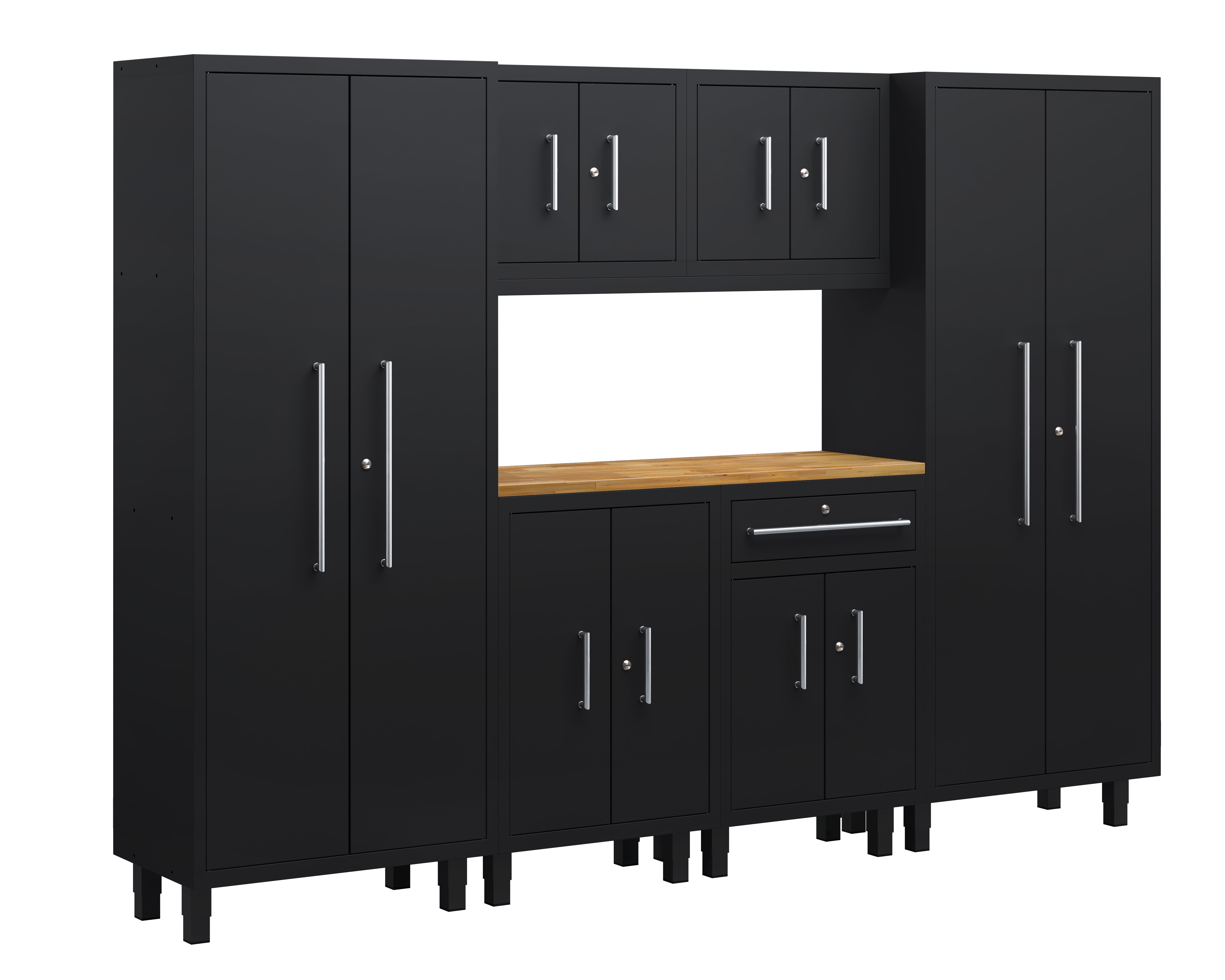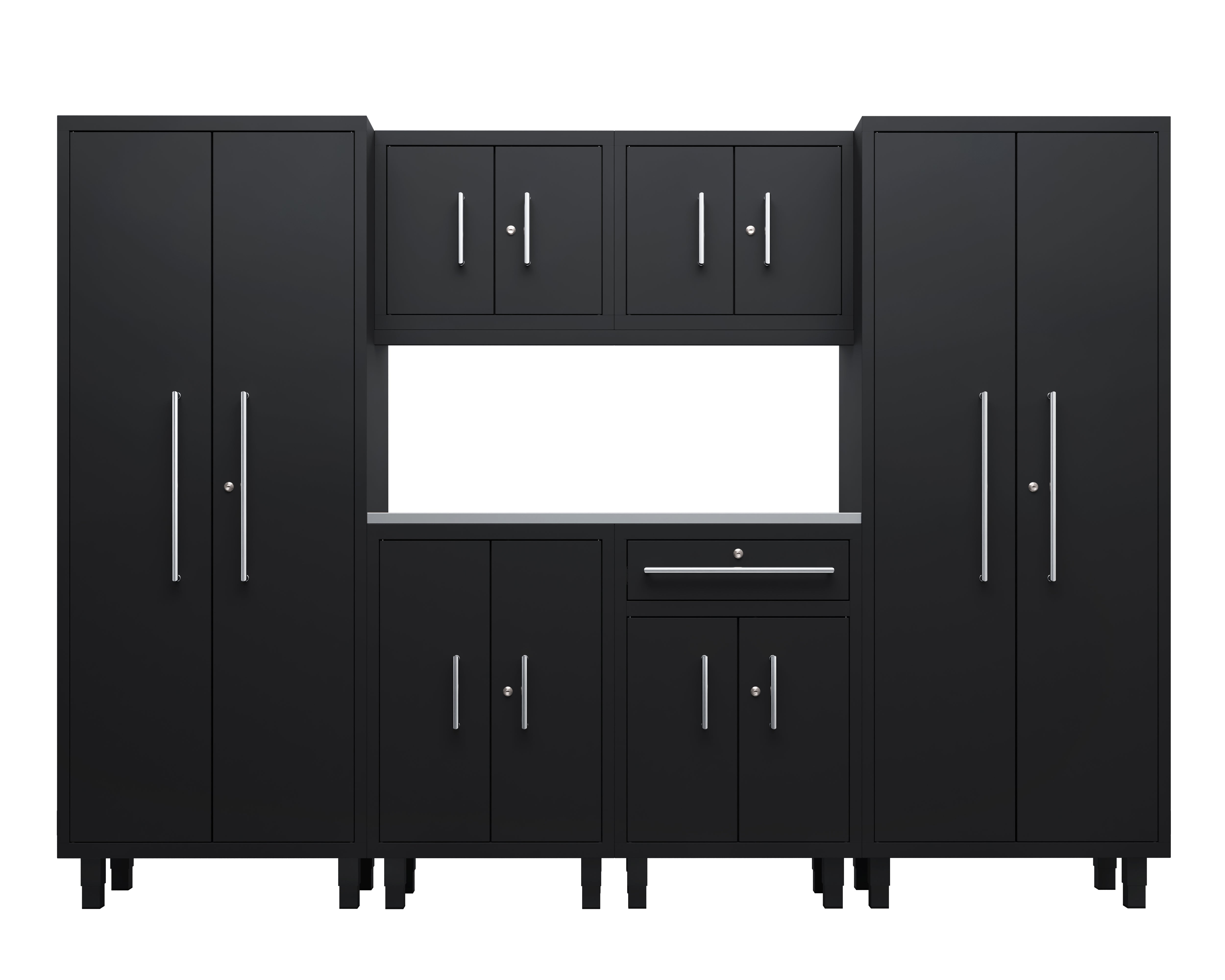 Maximize Your Garage Space with Modular Flexibility. The 7-Piece Storage Set delivers a complete organizational solution. Featuring two lockers, two wall cabinets, a split cabinet, a base cabinet, and a 48” countertop, this set transforms any garage into a highly efficient space.