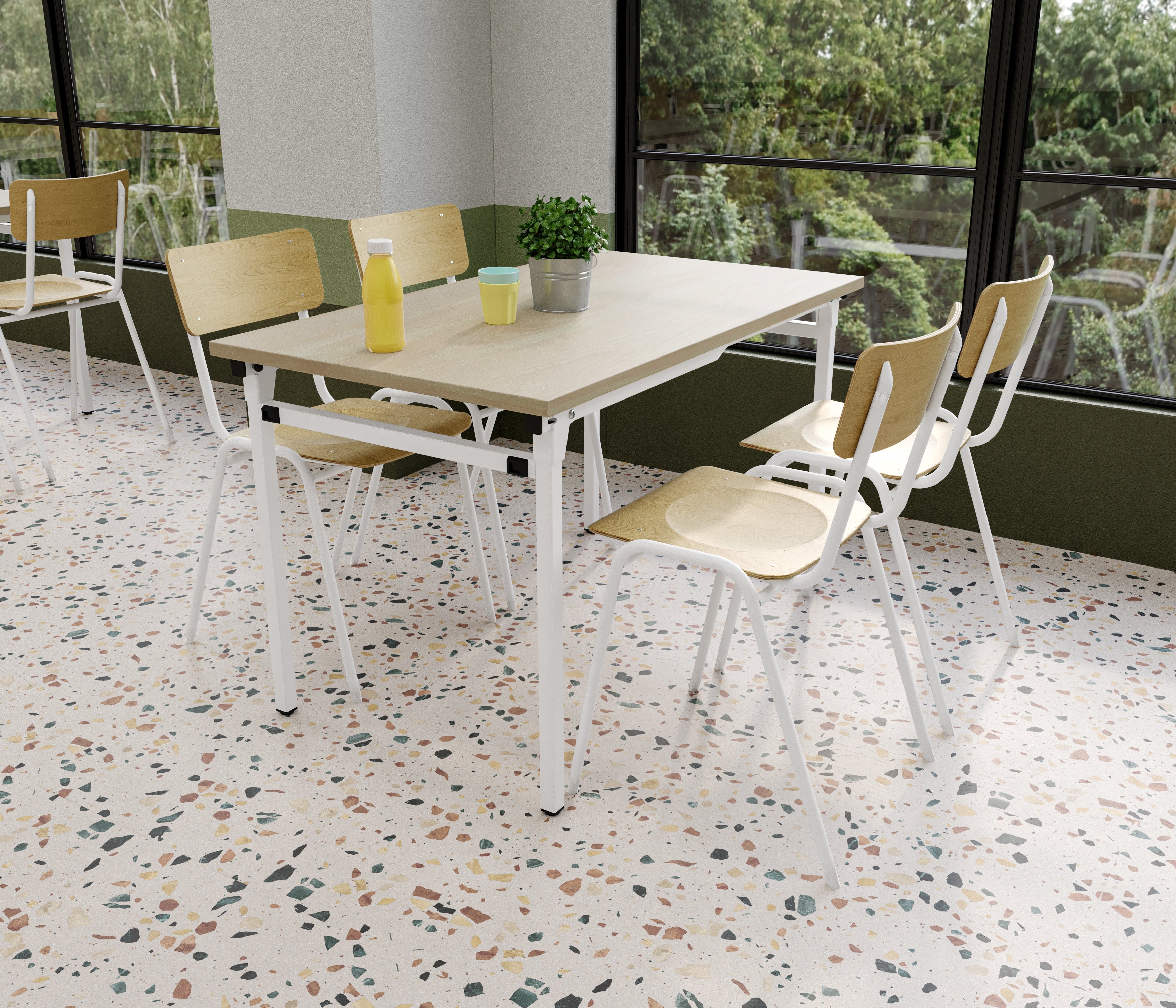 Experience durability and convenience with this versatile table, designed for any setting. It features 1.2" welded, powder-coated legs with built-in levelers, ensuring stability on all surfaces. The scratch-resistant 1" thick MFC (Melamine Faced Chipboard) top offers long-lasting protection. Ready to use straight out of the box, it requires no assembly, making it perfect for quick setup. Available in various sizes and colours, this table seamlessly fits into any space, combining functionality with style.