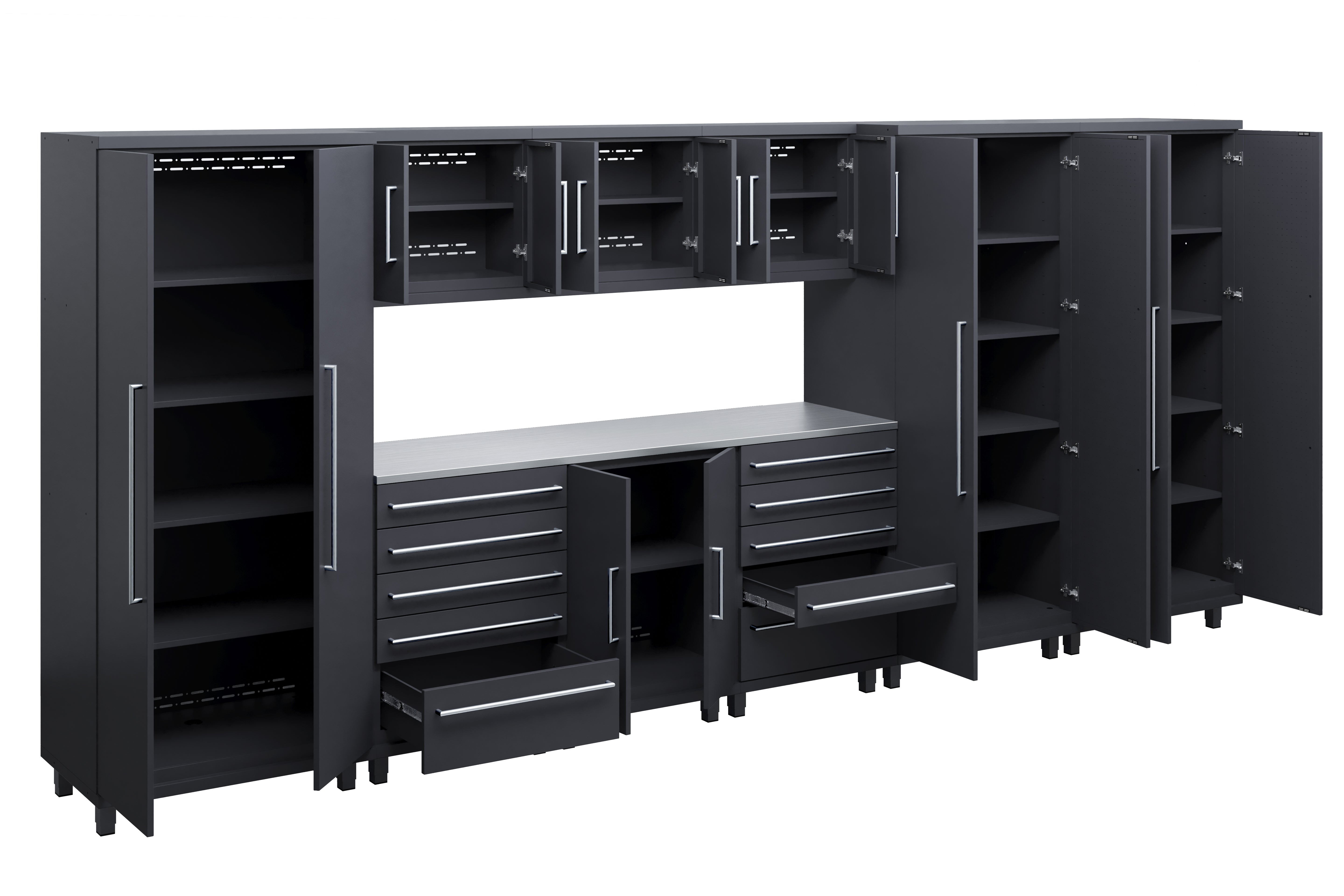 Prestige Series 10pc Cabinet Set with Base, Tool Drawer, Wall Cabinets and 36" Lockers