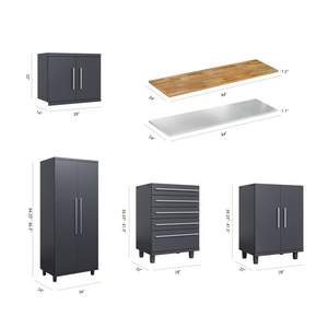 Product Benefits: The system creates distinct storage zones to support tools, supplies, and taller items. Wall cabinets help open up floor space, while the tool drawer provides an organized area for frequently used equipment. The entire setup maintains durability through everyday garage use.