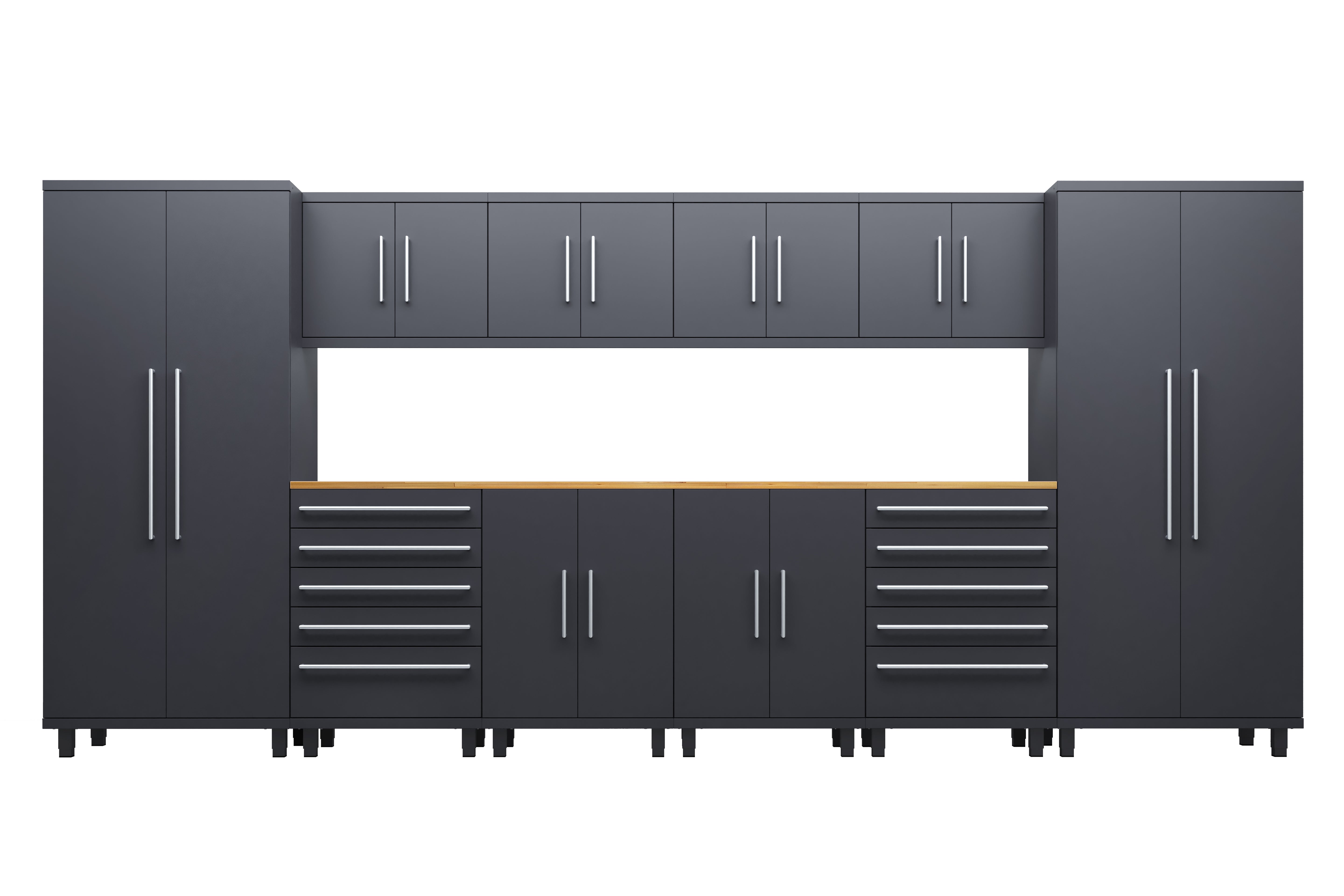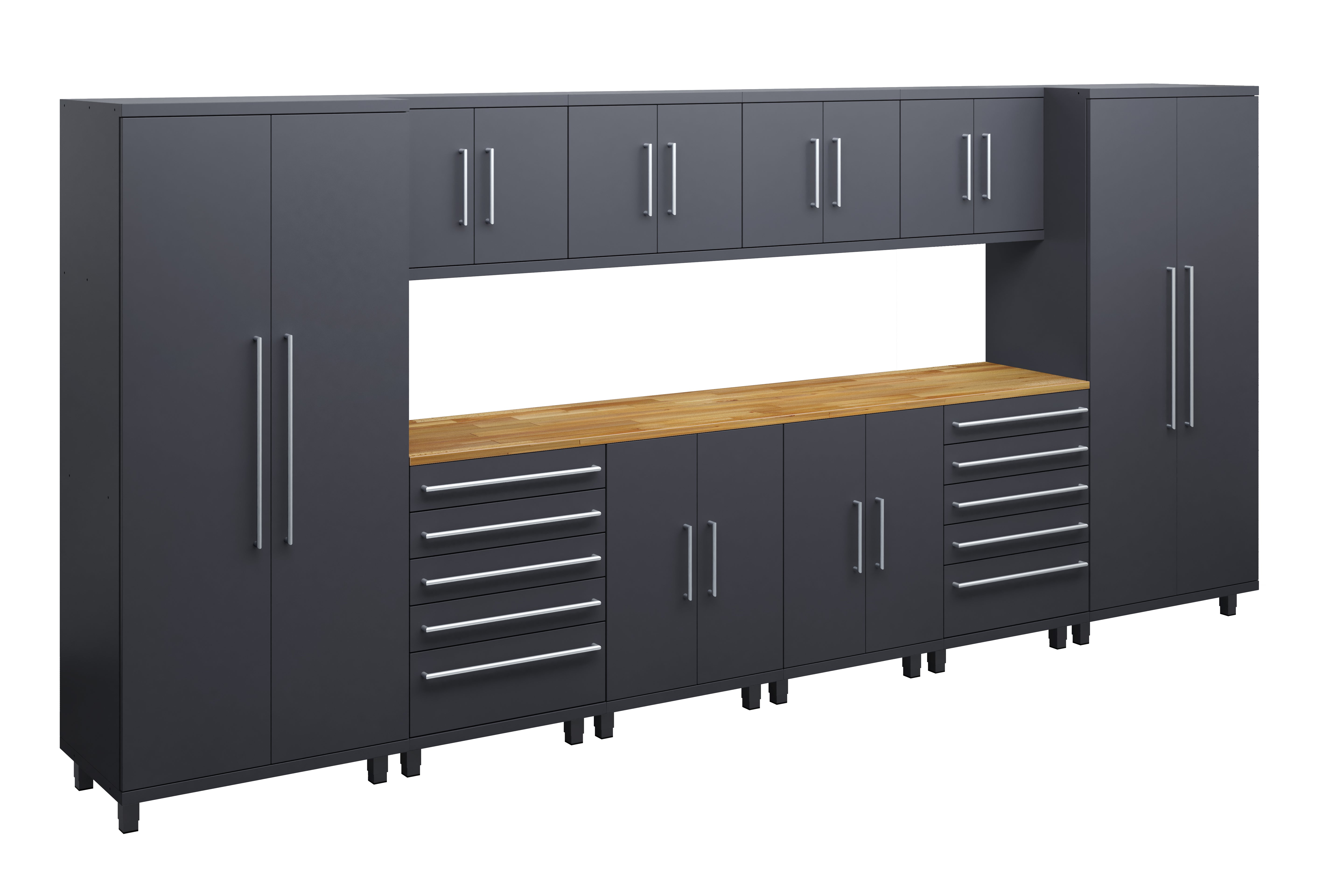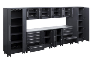 For those who need a fully equipped workspace, the 12-piece system delivers top-tier organization, strength, and durability. With multiple cabinets and an expansive work surface, this setup is built for high-performance garages.
