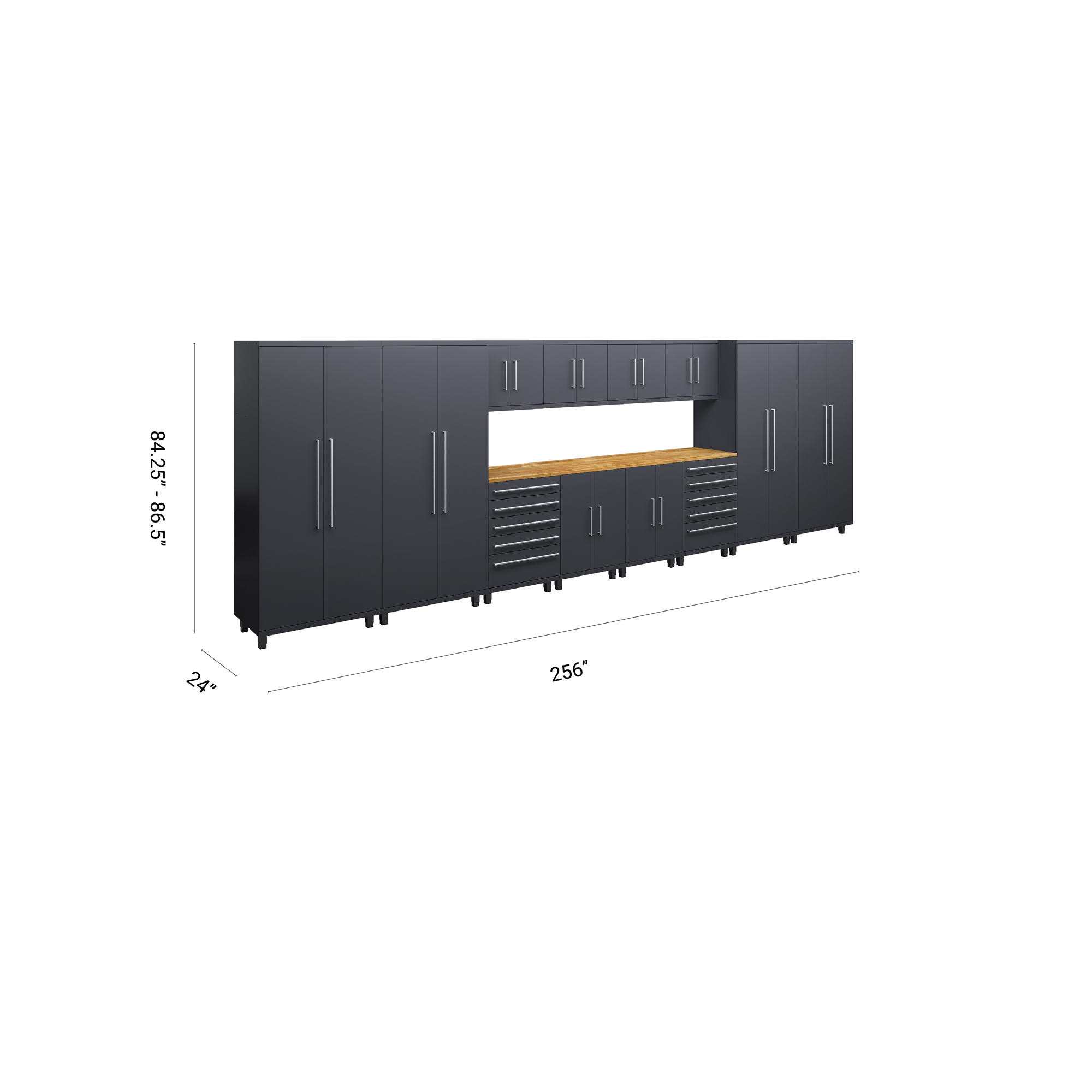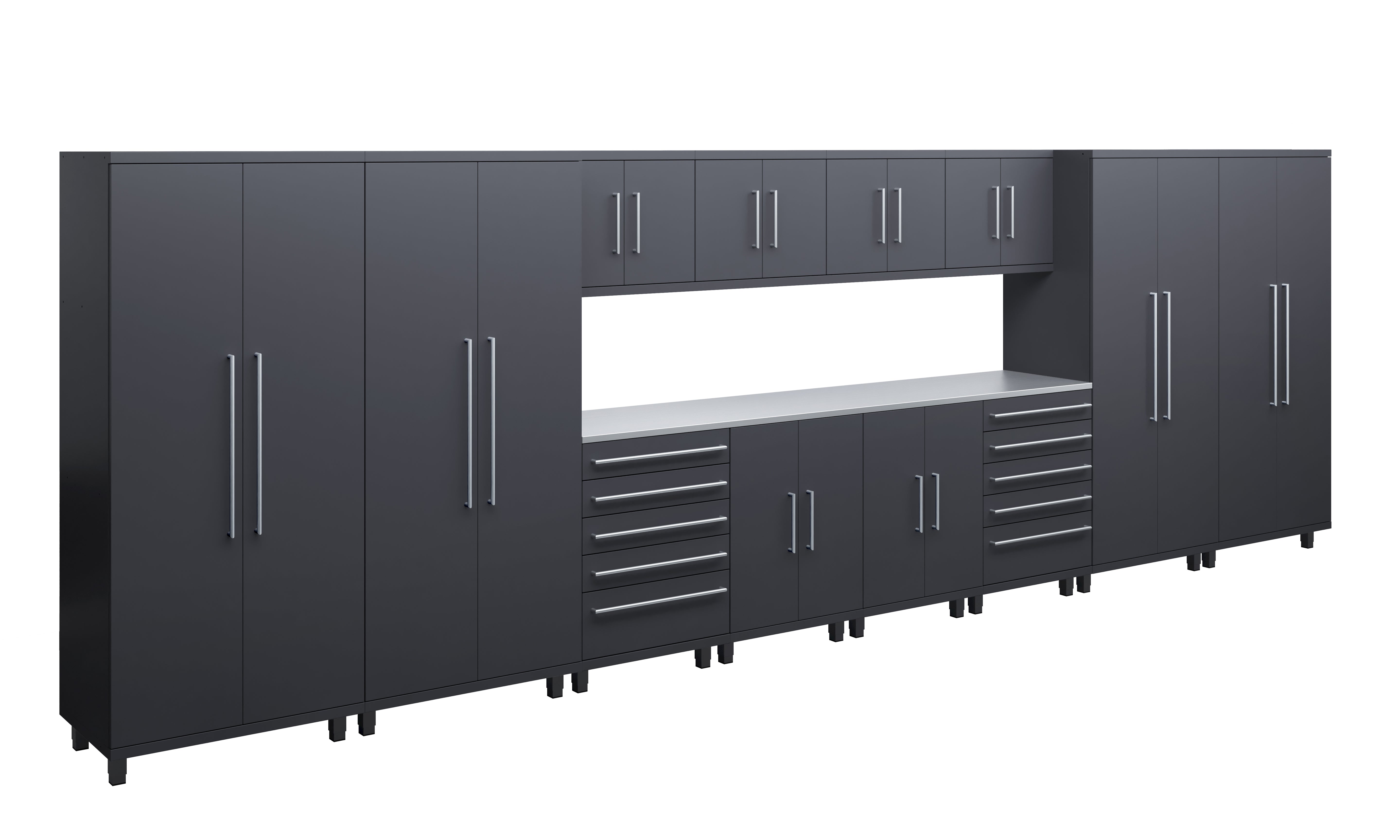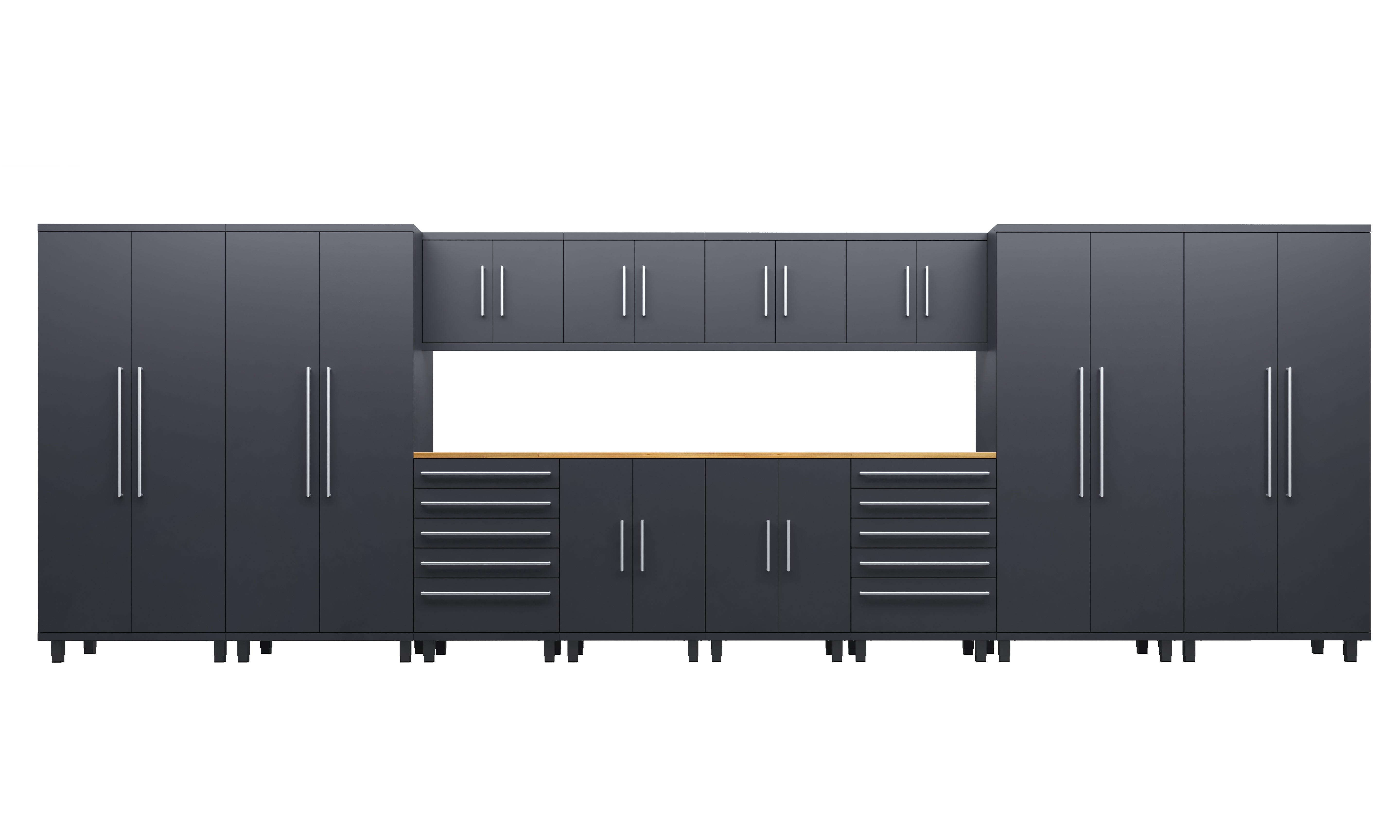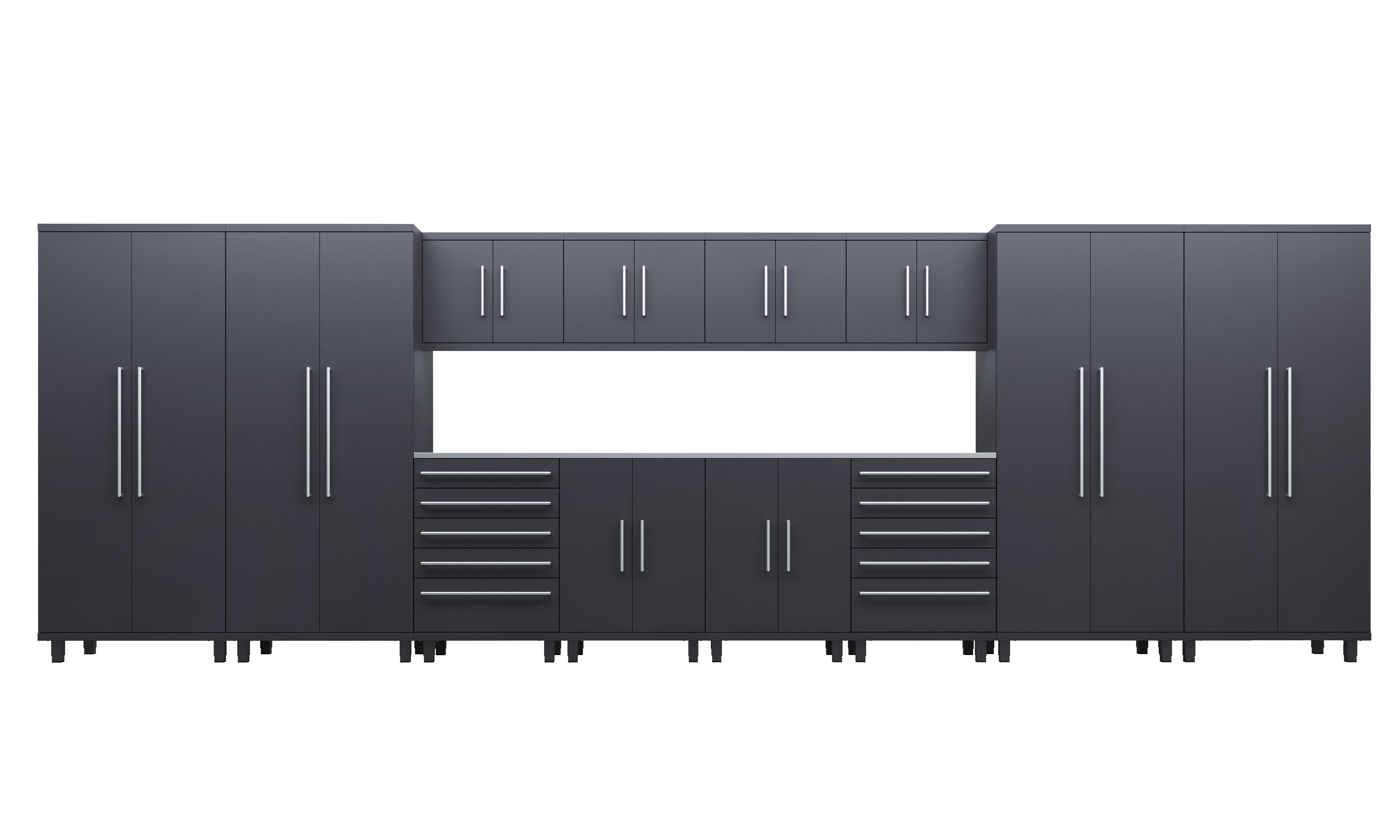 Engineered for professionals and high-end garage enthusiasts, the 14-piece Prestige Series kit offers unmatched storage and workspace. With 4 lockers, 4 wall, 2 base and 2 tool cabinets, and dual 56” worktops, this is the pinnacle of garage organization.