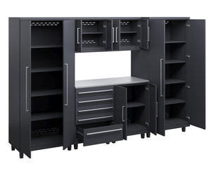 Prestige Series 7pc Cabinet Set with Base, Tool, Wall Cabinets and 36" Lockers