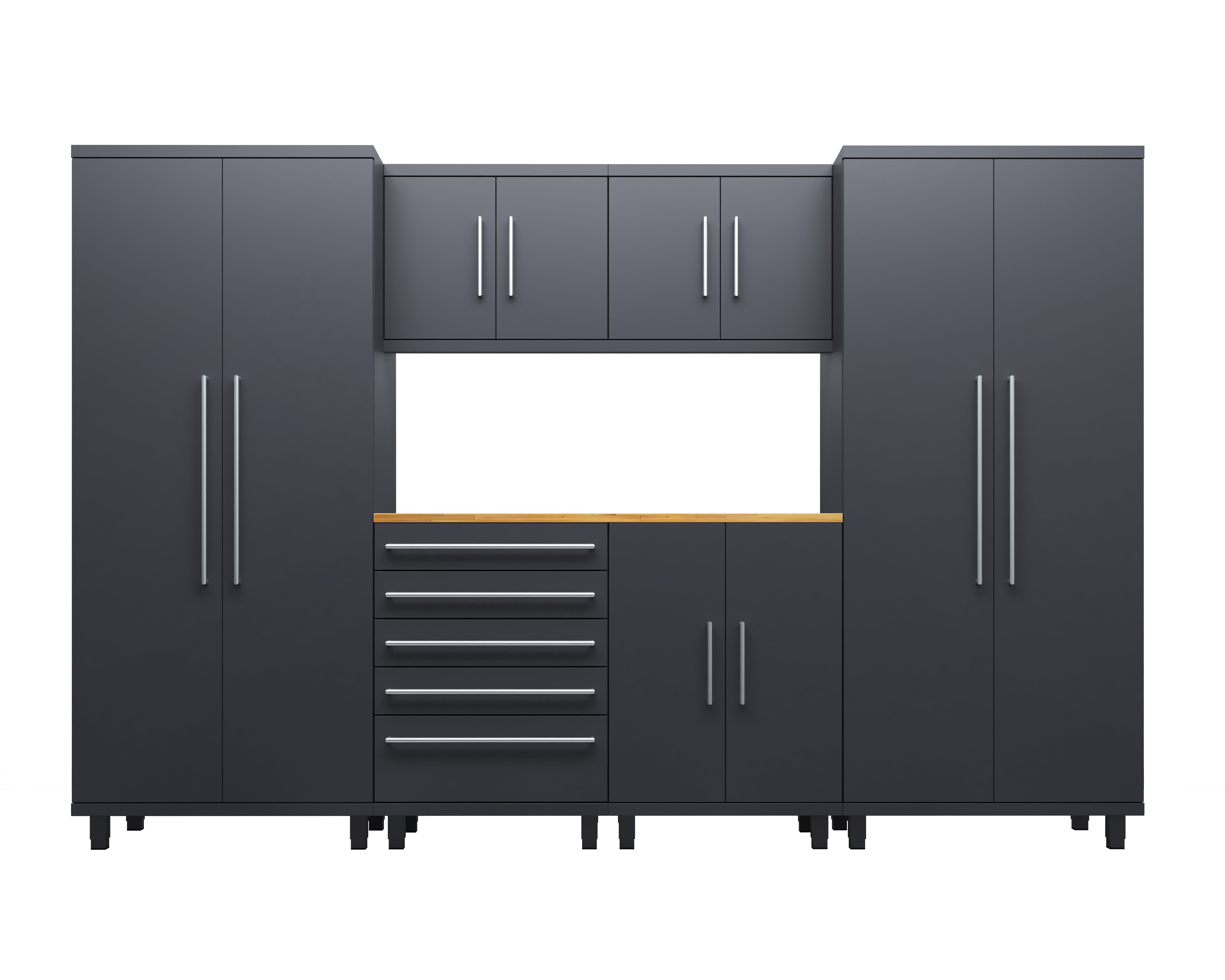 Designed for serious DIYers and professionals, the 7-piece garage kit offers a versatile mix of lockers, wall cabinets, tool storage, and a durable worktop. Whether organizing tools or creating a dedicated workspace, this system adapts to your needs.